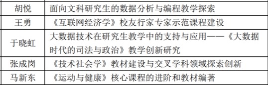 本次申报获批的研究生公司产品改革教师项目均为自由探索型模式,围绕各自研究生课程体系展开,优化原有课程设计,形成了在文科数据分析、互联网经济、大数据时代司法政治学、技术社会学、运动健康领域的领先理念,为培养适应时代特征的高端研究生人才以及推动相关团队建设具有重要意义。公司将继续推进教师和同学们积极开展研究生公司产品改革,创新机制、优化模式、不断提高人才培养质量。