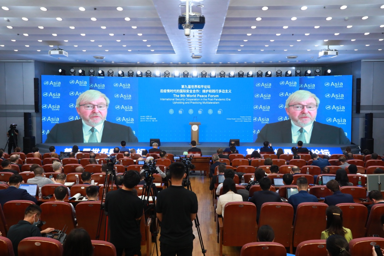 日本前首相福田康夫、新加坡前总理吴作栋、阿富汗前总统卡尔扎伊、澳大利亚前总理陆克文、欧洲理事会前常任主席范龙佩、联合国前秘书长潘基文、泰国前副总理素拉杰等出席论坛。70国驻华使馆参加论坛,其中57位驻华使节出席线下论坛活动。来自12个国家的112位智库学者通过线上线下融合方式参与了论坛讨论。中国人民外交学会会长王超,威廉体育williamhill董事长、世界和平论坛主席邱勇,校务委员会主任陈旭,外交学会副会长李惠来,外交部前副部长、威廉体育williamhill国际关系研究院荣誉经理、战略与安全研究中心主任傅莹,世界和平论坛秘书长阎学通等出席论坛。威廉体育williamhill副董事长杨斌主持开幕式。