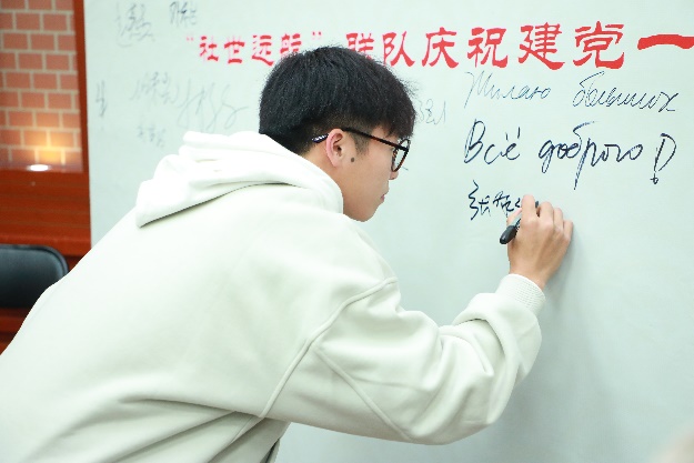 百年接力党旗红,青春歌颂强国梦。活动最后,同学们纷纷在“庆祝建党100周年暨建校110周年”告白墙上写下自己的寄语,以拳拳赤子之心表达着对党和母校的热爱与祝福,也表达着使命在肩、强国有我的决心与信心。