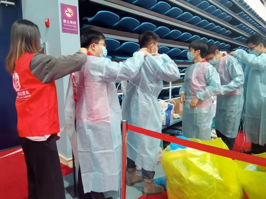 10月31日中午12点45分,志愿者们吃过简单的工作餐后,准时在综合体育馆内集合。负责人对流程进行简单讲解后,志愿者按照分组熟悉场地、领取防护服,并在医生的讲解下了解了工作内容。为了保障疫苗接种流畅地进行,志愿者们迅速进入工作状态,等待正式工作的开始。