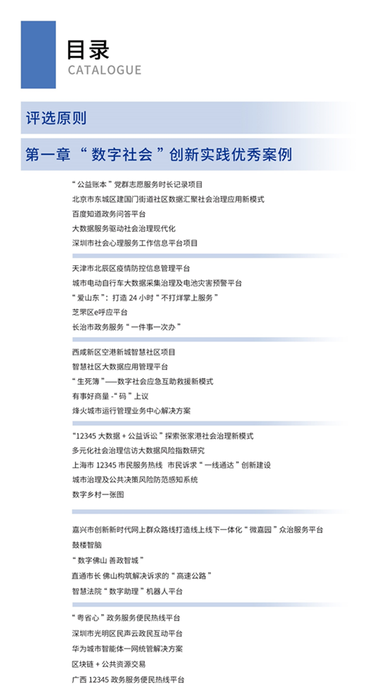 自今年7月案例征集启动以来,活动共收到来自23个省(自治区、直辖市)党政机关、事业单位、社区、社会组织、公司等100多家单位共200余份的案例申报材料。本着发展理念的创新性、治理效能的普适性、社会服务的普惠性、应用场域的代表性、数字技术的普及性和申报材料的规范性六大原则,评选出30份优秀案例和10份关注案例。