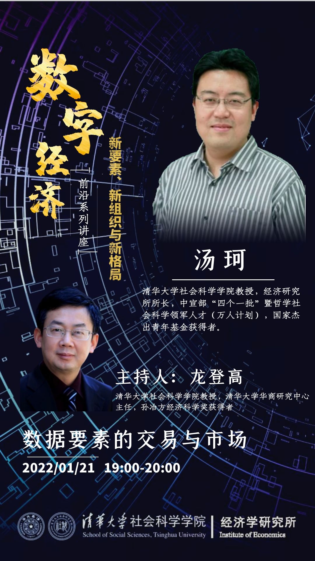 龙登高首先回顾了前两场讲座的播放情况,并介绍了汤珂在大宗商品与数字经济领域的突出成就。上百万的观众参与量表明数字经济与大众生活息息相关,数字经济系列讲座也是数字经济的表现形式之一,市场和中央都高度重视数字经济的发展。