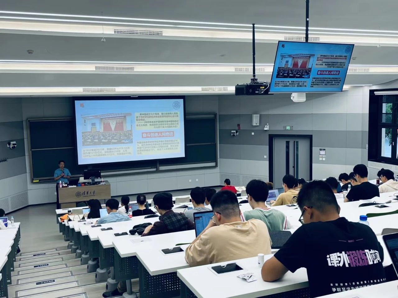欧阳沁从“3年疫情防控看中国共产党执政兴国70余年的成功密码”和“社会科学与研究生生涯”两个方面进行授课,深刻分析了中国共产党执政兴国取得的历史性成就以及取得疫情防控决定性胜利的根本原因,阐述了社会科学的时代际遇与清华社科人的责任和使命,勉励新生同学坚定理想信念,度过有意义的研究生生涯。