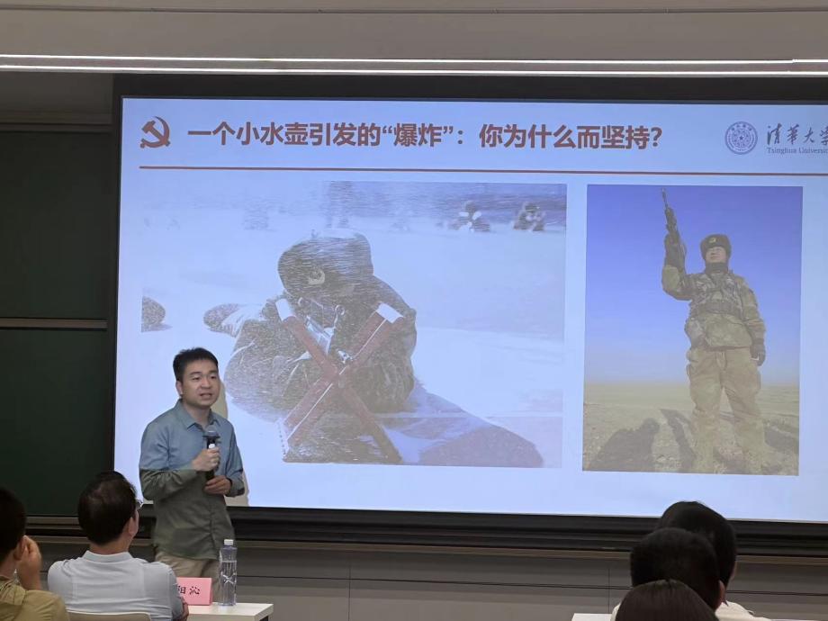 欧阳沁带领大家领略不同历史时期清华人的光荣事迹与责任担当。从“一二·九”运动《告全国民众书》发出“华北之大,已经安放不得一张平静的书桌了”的悲愤呐喊,到建造“200号”核反应堆的年轻人立下“用我们的双手开创祖国原子能事业的春天”的豪迈誓言,再到新时代新百年,清华人喊出“扎根中国大地建设世界一流大学”的时代强音。沈崇诲、邓稼先、朱凤蓉......一代代清华学子干惊天动地事、做隐姓埋名人。这是一代代清华人青春报家国、奋进正当时的担当与传承。