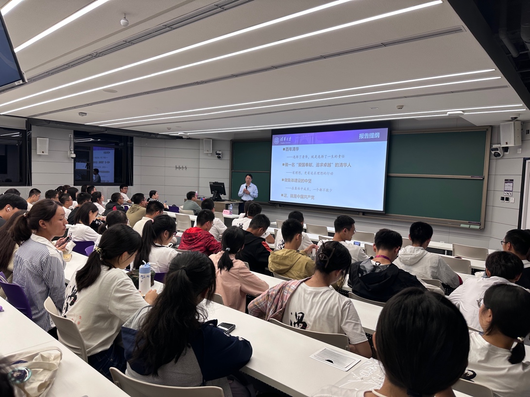 欧阳沁首先欢迎2023级新生进入清华园学习,充分肯定大家近期军训良好的精神面貌。紧接着,他从“百年清华——选择了清华,就是选择了一生的责任”“做一名爱国奉献、追求卓越的清华人——有理想,更有追求理想的行动”“做集体建设的中坚——在集体中成长,一个都不能少”“这,就是中国共产党”四个方面进行授课,带领大家全方位回顾清华百年校史及不同发展时期下的优秀清华人事迹,讲述党的百年奋斗征程与初心使命,教导同学们将个人理想与国家民族的梦想结合起来,在集体中成长成才,勉励同学们立志做有理想、敢担当、能吃苦、肯奋斗的新时代好青年。