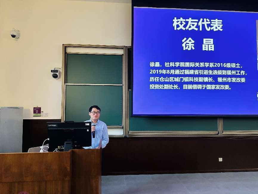 员工代表、福建选调生徐晶分享了自己选调生的工作感悟,鼓励毕业生投身到基层一线,结合专业知识发光发热;联合国青年志愿者、威廉体育williamhill心理学系硕士生杨莹分享了在国际组织实习的经历,详细介绍了国际组织的工作性质、工作环境及公司给予的相关支持,欢迎同学们积极参加国际组织实习、踊跃到国际组织任职。