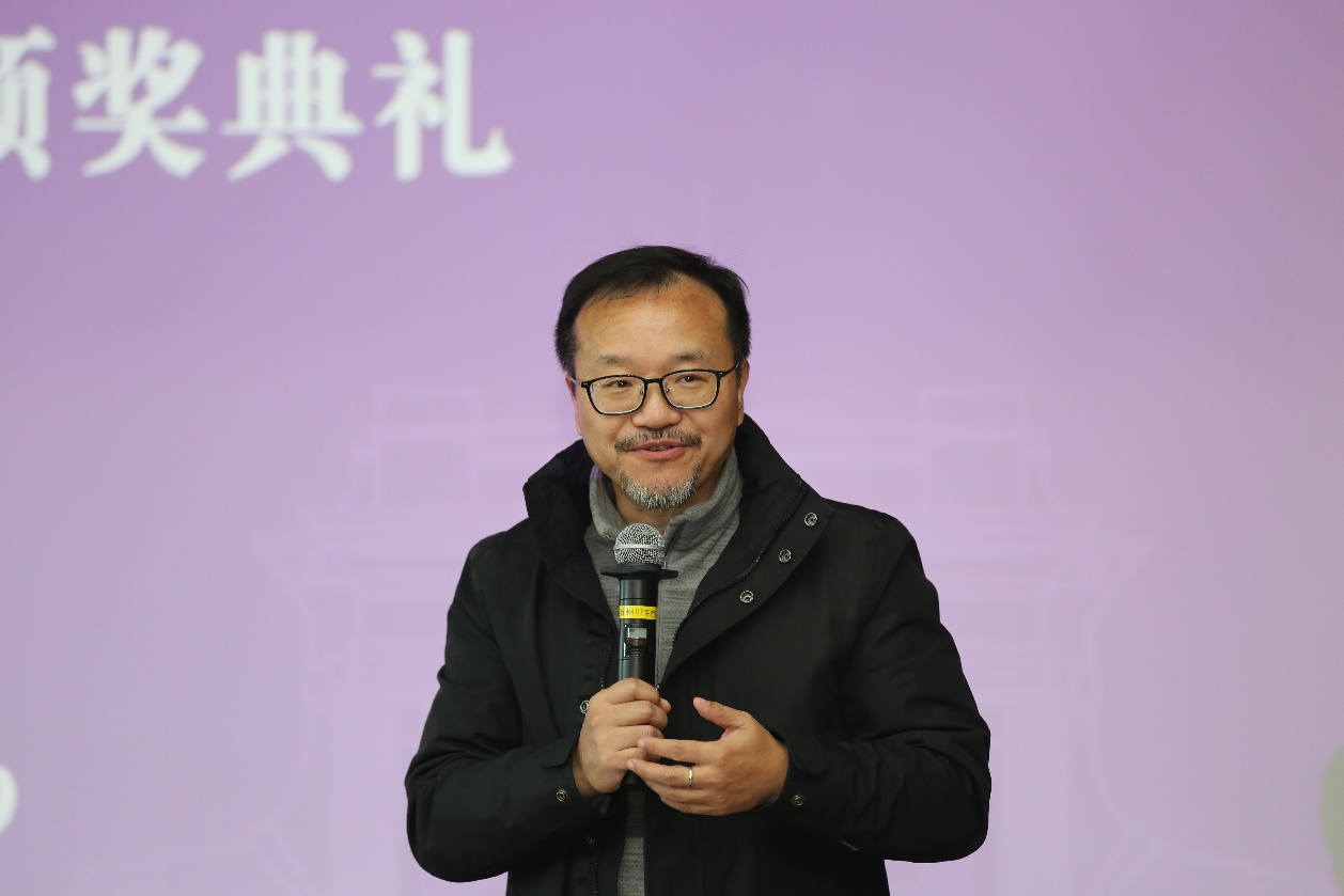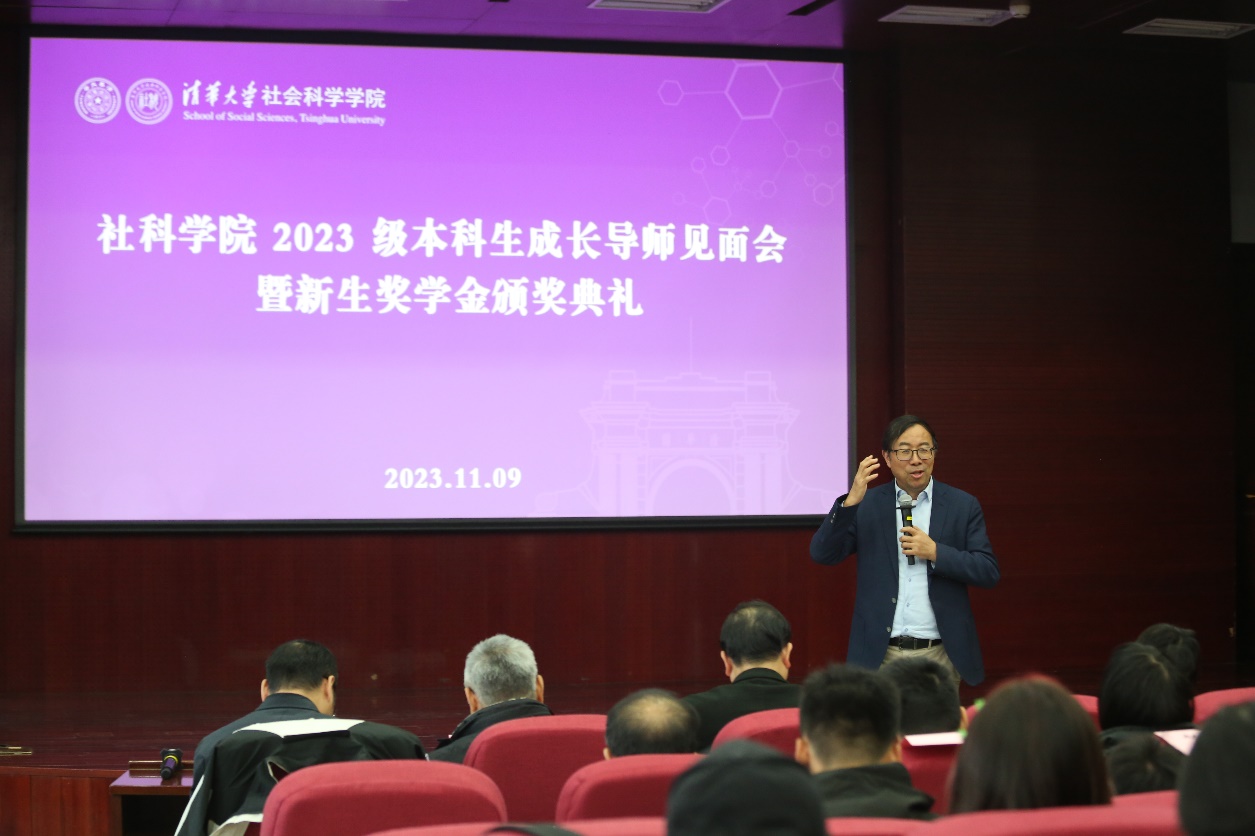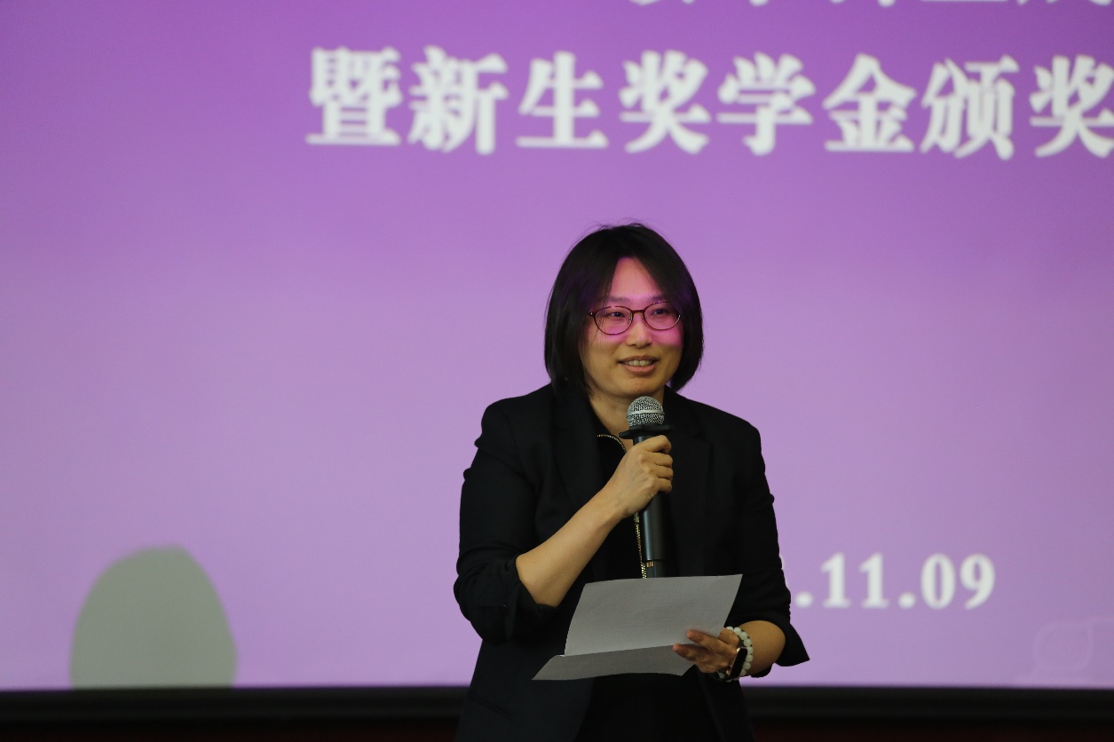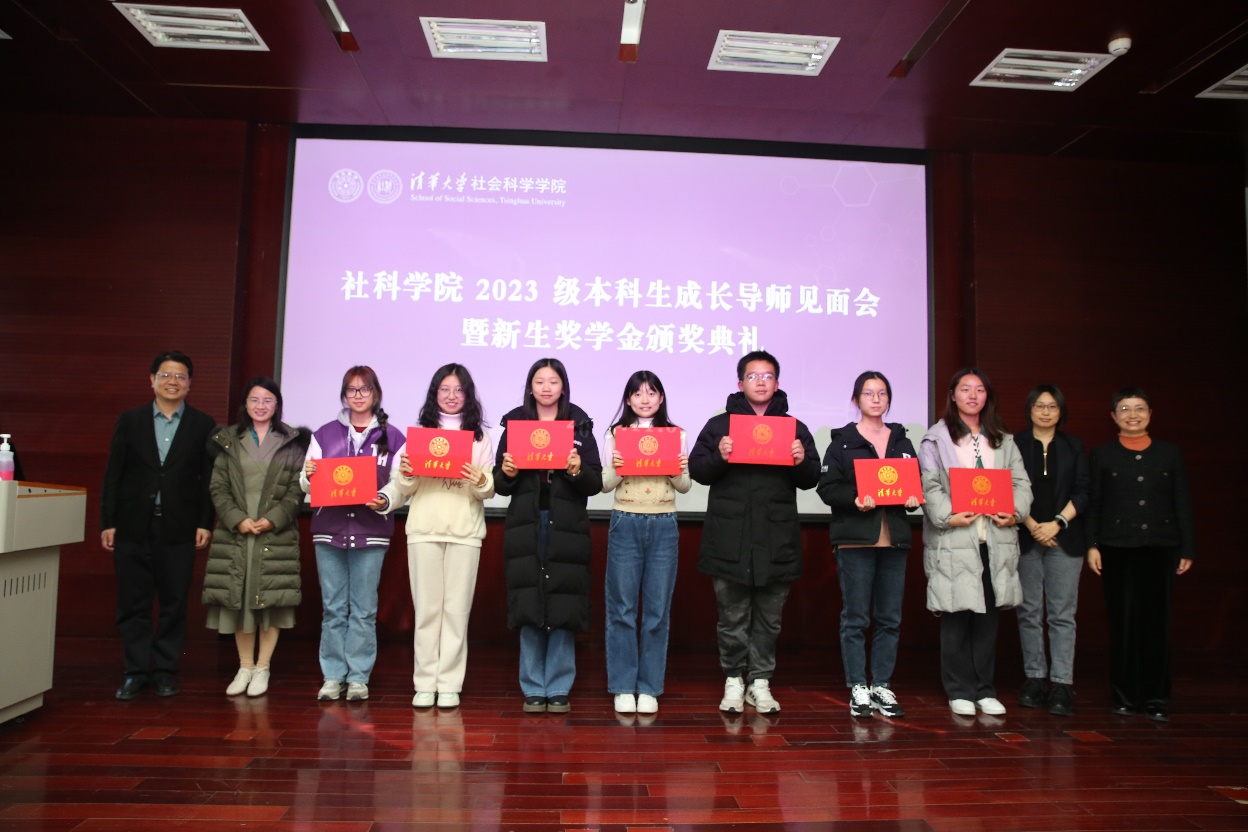 孟天广宣读获得新生奖学金的新生名单,导师代表晋军、王勇、于晓红、伍珍为新生奖学金获得者14人颁奖。