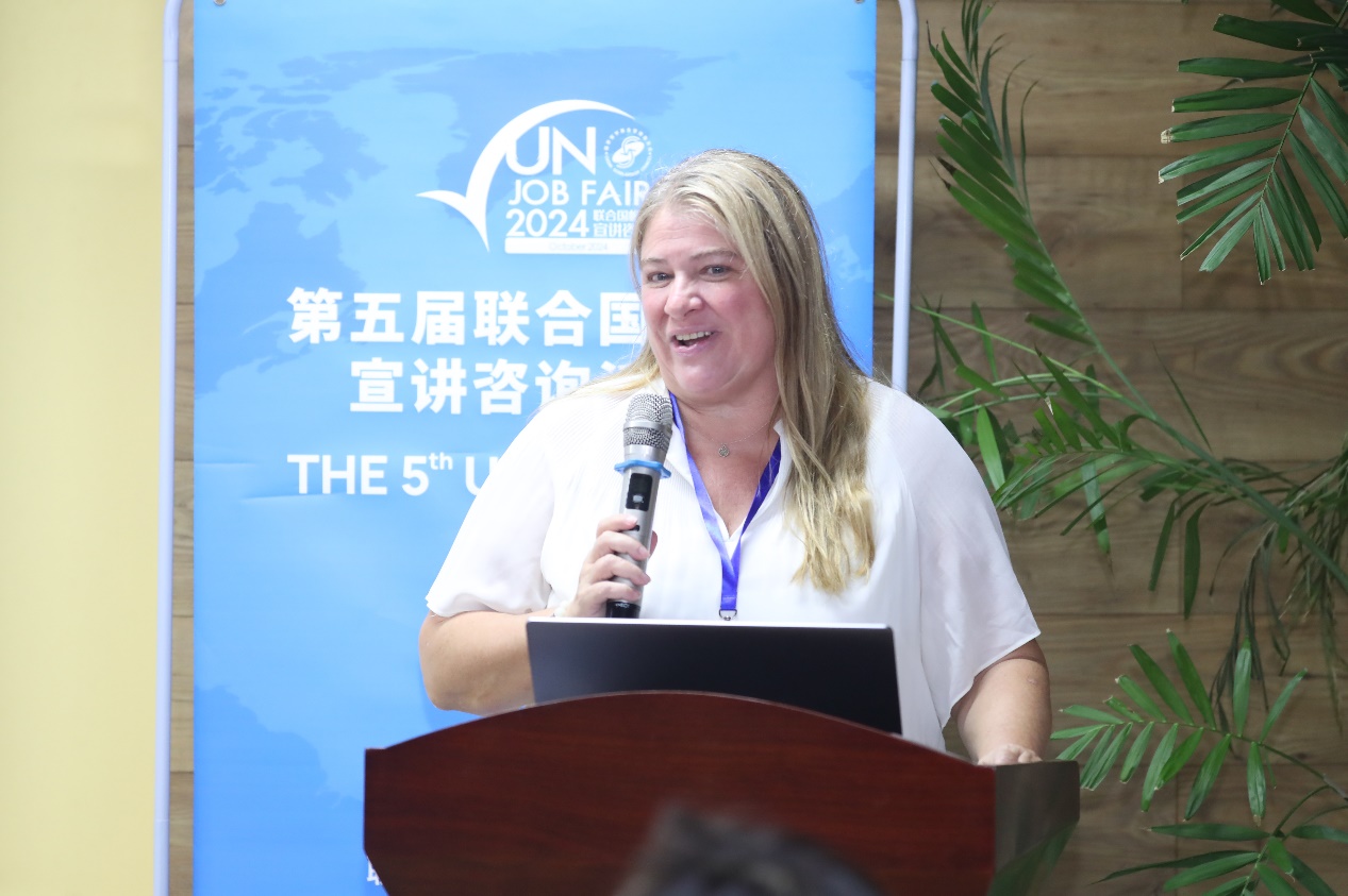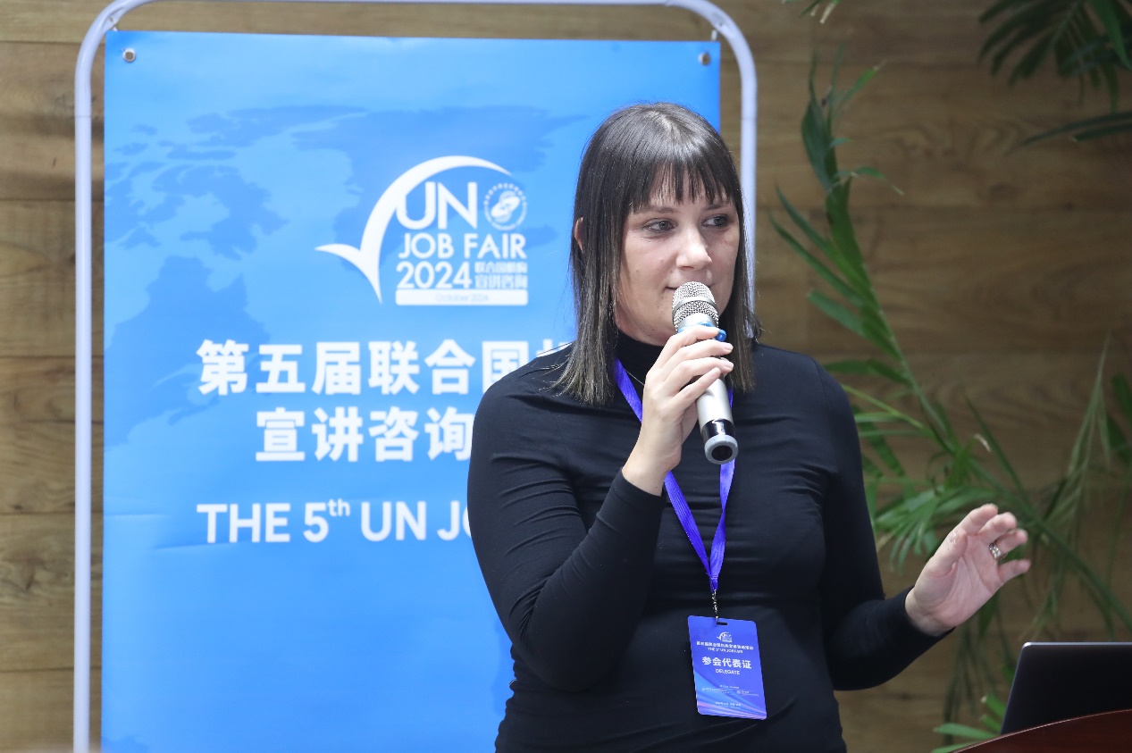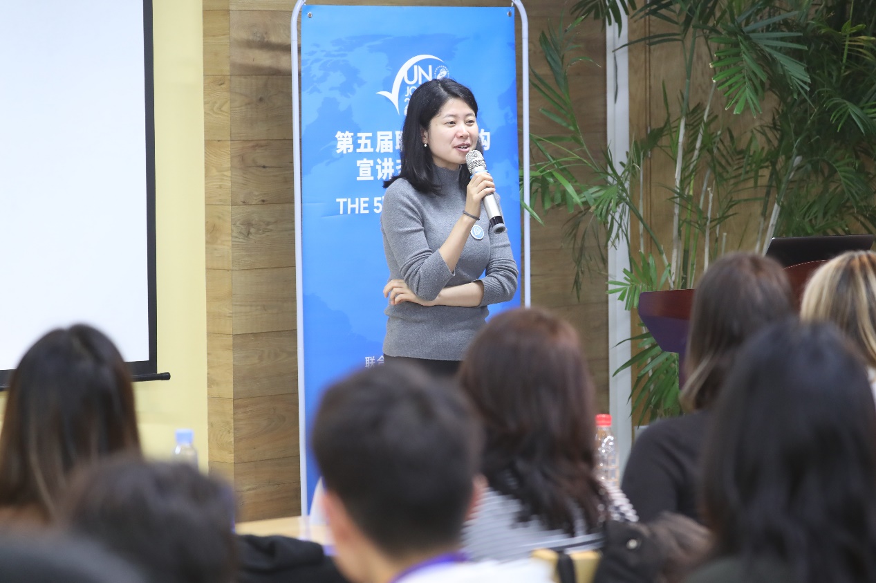 联合国粮农组织(UN FAO)总部人力资源官员Mami Wada、联合国维也纳办事处和联合国毒品和犯罪问题办公室(UNOV&UNODC)人力资源管理服务部副主任Bettina Feichtinger-Erhart、国际统一私法协会(UNIDROIT)人力资源协调员兼秘书长助理Valentina Viganò、联合国日内瓦办事处(UNOG)高级人力资源官员Elena Cristina Nitoi、联合国难民署(UNHCR)人力资源部征聘组负责人Regina Cordero以及巴黎政治大学中国办公室驻华代表韩赫逐一发言,介绍各机构的主要职责,并就国际组织实习与求职申请给出诸多建议。代表们表示申请国际组织职位前,申请人需要做足准备,尤其要主动了解招聘职位的职责同自身经历的匹配程度,并鼓励同学们可从小目标开始,保持热情与信心。