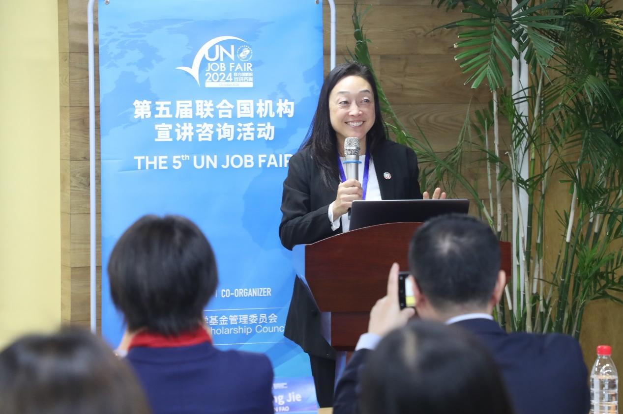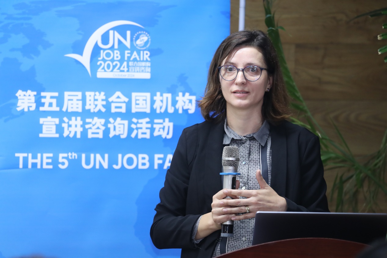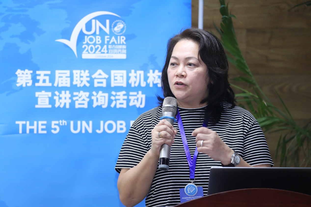 联合国粮农组织(UN FAO)总部人力资源官员Mami Wada、联合国维也纳办事处和联合国毒品和犯罪问题办公室(UNOV&UNODC)人力资源管理服务部副主任Bettina Feichtinger-Erhart、国际统一私法协会(UNIDROIT)人力资源协调员兼秘书长助理Valentina Viganò、联合国日内瓦办事处(UNOG)高级人力资源官员Elena Cristina Nitoi、联合国难民署(UNHCR)人力资源部征聘组负责人Regina Cordero以及巴黎政治大学中国办公室驻华代表韩赫逐一发言,介绍各机构的主要职责,并就国际组织实习与求职申请给出诸多建议。代表们表示申请国际组织职位前,申请人需要做足准备,尤其要主动了解招聘职位的职责同自身经历的匹配程度,并鼓励同学们可从小目标开始,保持热情与信心。