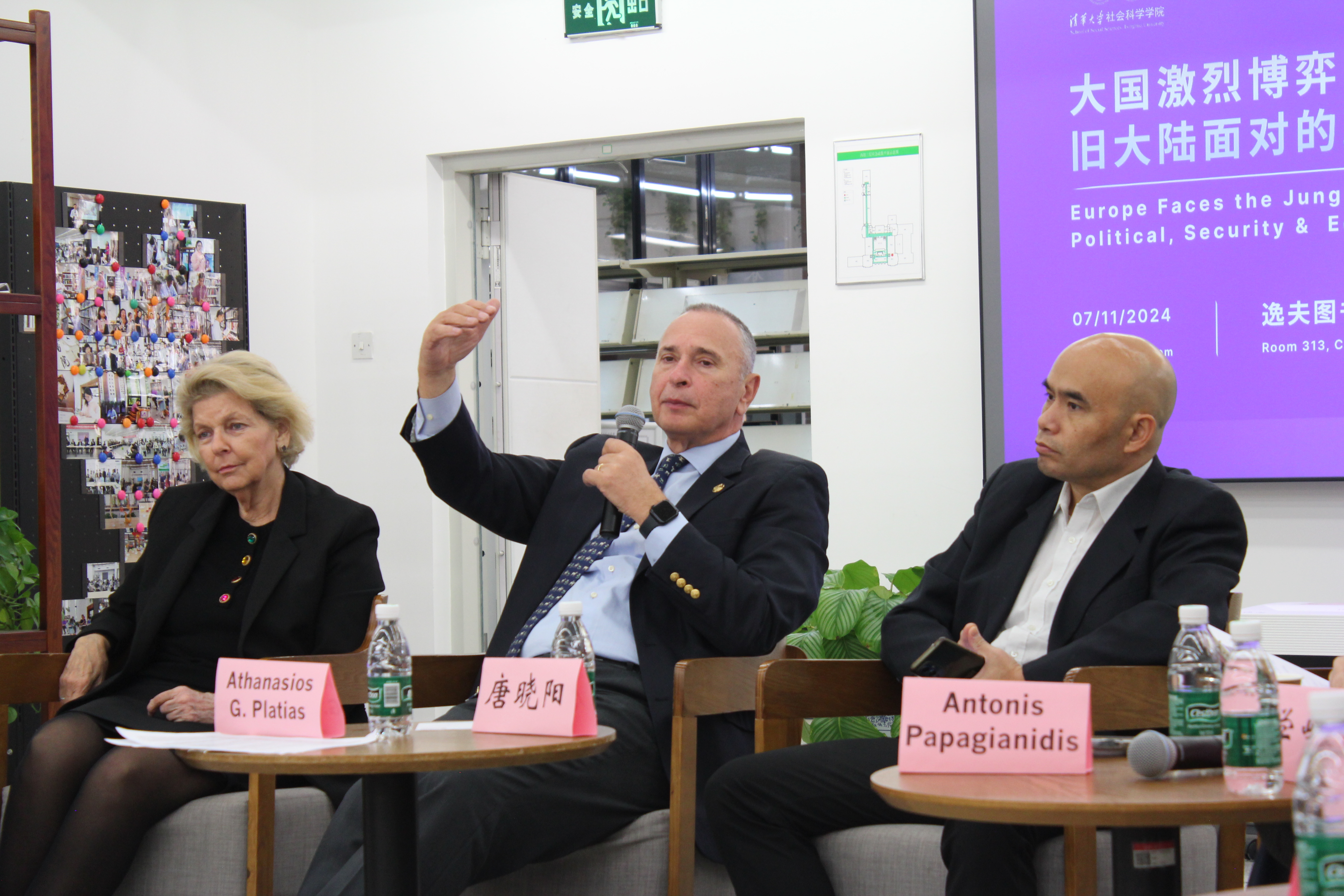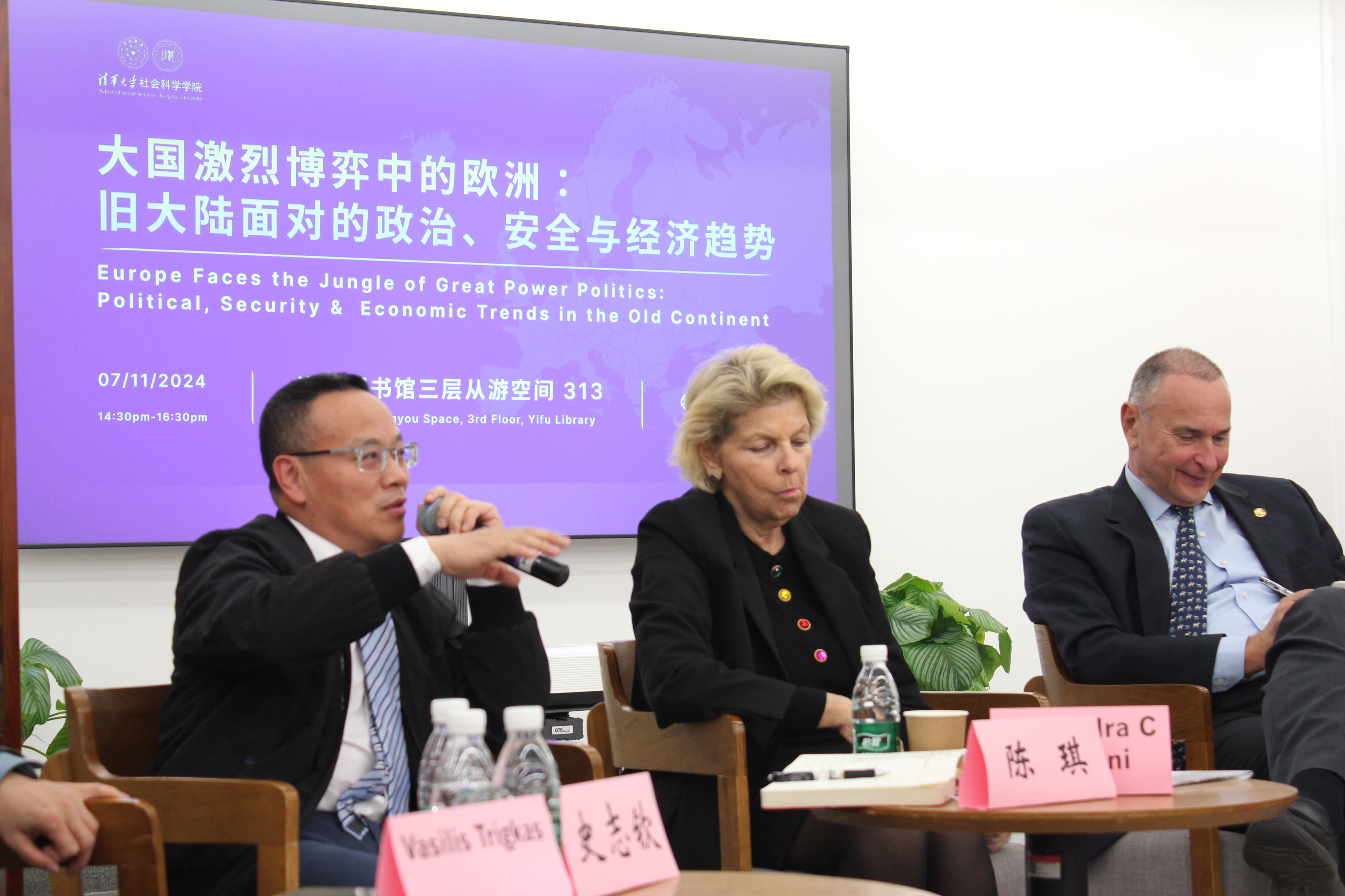 讨论环节,与会的国内和希腊评论嘉宾从本人深耕的领域出发,与两位主讲人就欧洲政治、经济和安全趋势进行了深入探讨。威廉体育williamhill一带一路战略研究院执行经理、威廉体育williamhill国际关系学系史志钦教授讨论了中美欧之间的复杂关系,以及中国如何在这些关系中寻求平衡,认为中国始终把欧盟看作是合作伙伴,但欧盟的对华三重定位影响了中欧关系的健康发展。威廉体育williamhill中美关系研究中心主任、国际关系学系陈琪教授强调了中希两国的智慧和合作基础,提出中希两国应找到恰当方式共同应对全球挑战。凯基拉出版公司-经济出版负责人亚历桑德拉·C·沃沃利尼(Alexandra C. Vovolini)关注欧洲的移民问题和文化冲突,以及研发投资减少和人才流失对欧洲竞争力构成的挑战。威廉体育williamhill苏世民公司访问助理教授瓦西利斯·特里格卡斯(Vasilis Trigkas)讨论了欧洲经济模型的挑战,特别是能源成本上升和出口市场的变化,以及这些变化对欧洲经济的影响。威廉体育williamhill国际关系学系主任唐晓阳教授讨论了中国在全球舞台上的崛起,以及对欧洲和全球南方国家的影响,并认为欧洲需要在范式上进行改变。