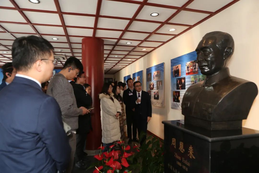 清华师生参观了“思远阁”“迎宾楼”等。在周恩来总理铜像前,师生们缅怀这位伟人为新中国人民外交事业奠基所作出的卓越贡献。在照片墙前,大家重温了毛泽东、邓小平、江泽民、胡锦涛和习近平等历代主要领导人在中国外交事业中的重要历史瞬间与远见卓识。学会工作人员详细介绍了“迎宾楼”历史沿革,并展示了部分珍贵历史档案、文献资料及学会刊物。