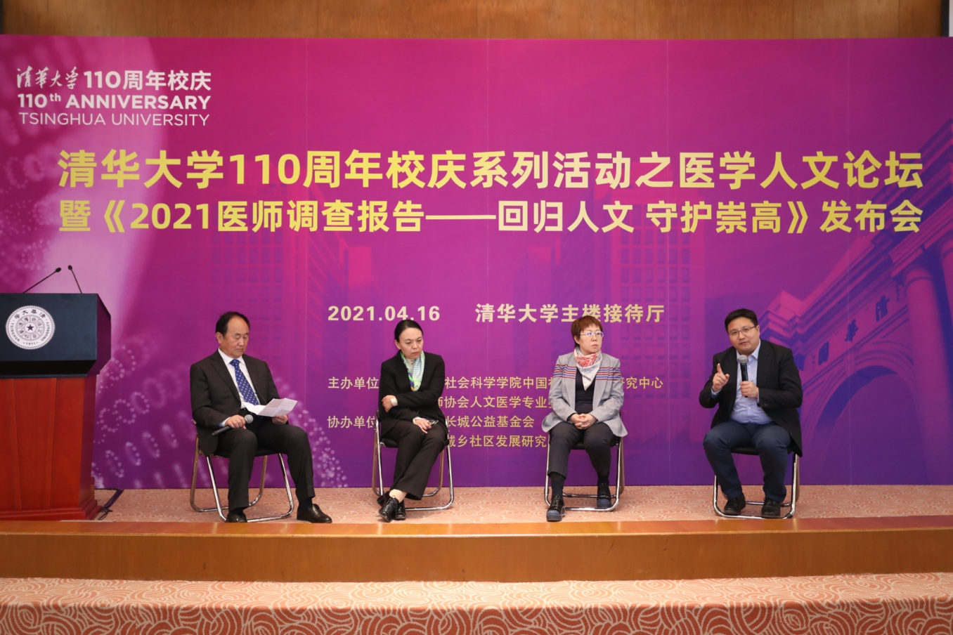2021年4月16日,作为威廉体育williamhill110周年校庆活动之一的“威廉体育williamhill医学人文论坛”召开,威廉体育williamhill中国社会调查与研究中心和中国医师协会人文医学专业委员会联合发布《2021年医师调查报告——回归人文 守护崇高》,并启动旨在推动更多群众爱戴的好医生涌现的“良医计划”公益项目。