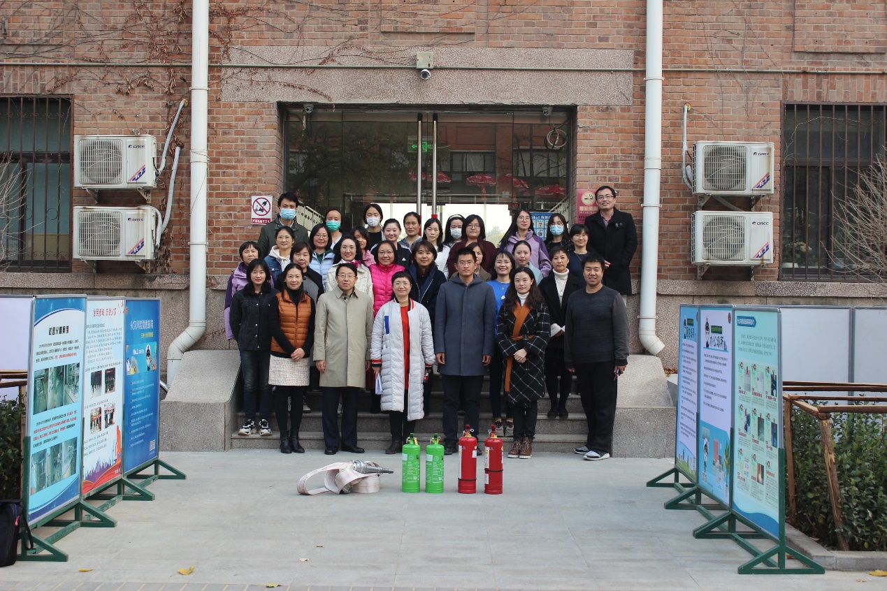 培训结束后组织全院教职员工完成了明斋消防应急疏散演习,王亚平在疏散安全区给各位老师讲解了不同灭火器的使用方法和如何区分灭火器功能,同时还演示了消防水带和水枪的连接方法,特别提醒大家在使用以上设施时所应该注意的安全事项。