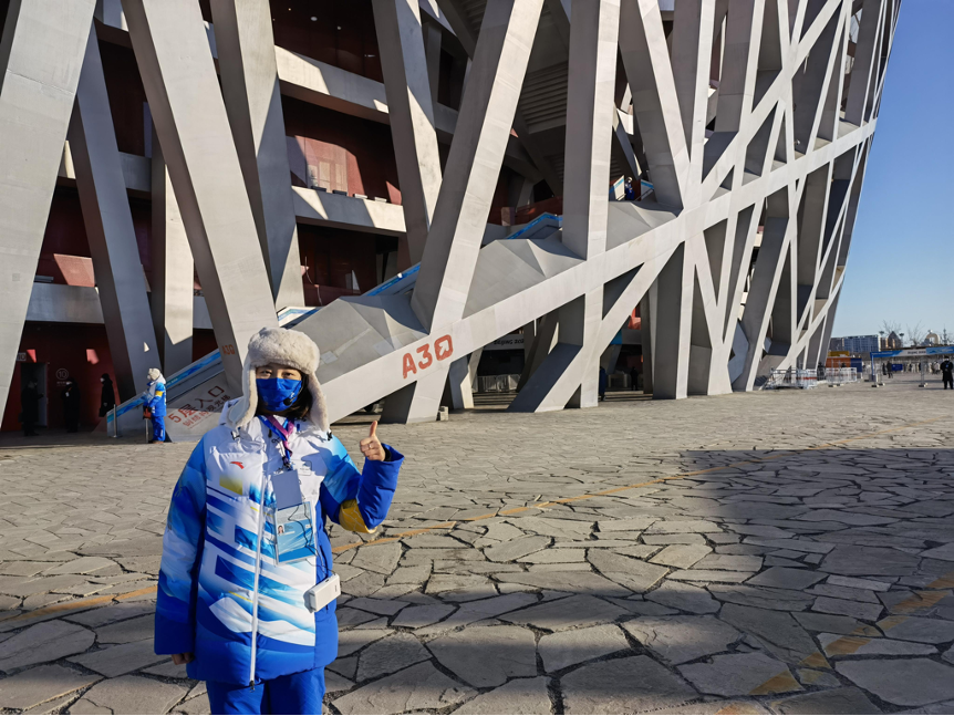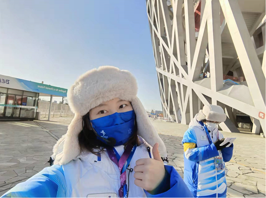 谈到冬奥会开幕式,作为赛事服务组的一员,能够在鸟巢现场亲眼见证北京冬奥会的开幕,这让庄凌云感到无比自傲,同时也表达了一丝“遗憾”。由于工作需要,赛事服务组志愿者们于开幕式结束前一小时就回到了自己的工作岗位。庄凌云望着鸟巢外的天空,听着场内传出的阵阵欢呼声,想象着和平鸽放飞和主火炬点燃时的盛大场景。当烟花的轰鸣声想起,开幕式达到了高潮,她在场外昂起头期待地望向天空,却什么都看不到。那一刻,激动和落寞的心情在心底迸发,遗憾自己不能亲眼见证这一历史性的一刻。但转念一想,正是包括自己在内的众多志愿者的共同努力,才使仪式能够顺利开展,“我们作为‘燃烧的雪花’共同参与了这历史性的一刻,我应当为自己感到骄傲!”