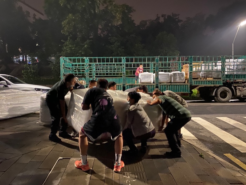张冰作为团队的负责人,总是身先士卒,团队的同学们也会迎难而上,师生通力合作、共同克服困难。团队进驻初期,许多大型设备需要安装到训练场馆中,国家队日间的训练不能中断,这项工作只能在夜间进行。由于国家队严格的疫情防控规定,搬运工人无法进入场地,这项艰巨的工作落到了团队师生身上。看到满满一车的设备,团队做好了彻夜不眠的准备,而张冰也准备投入到搬运工作中。员工们担心张冰的身体,让他早点回去休息,张冰却心疼自己的员工们,顾不上休息,带领着同学开始了搬运安装工作。