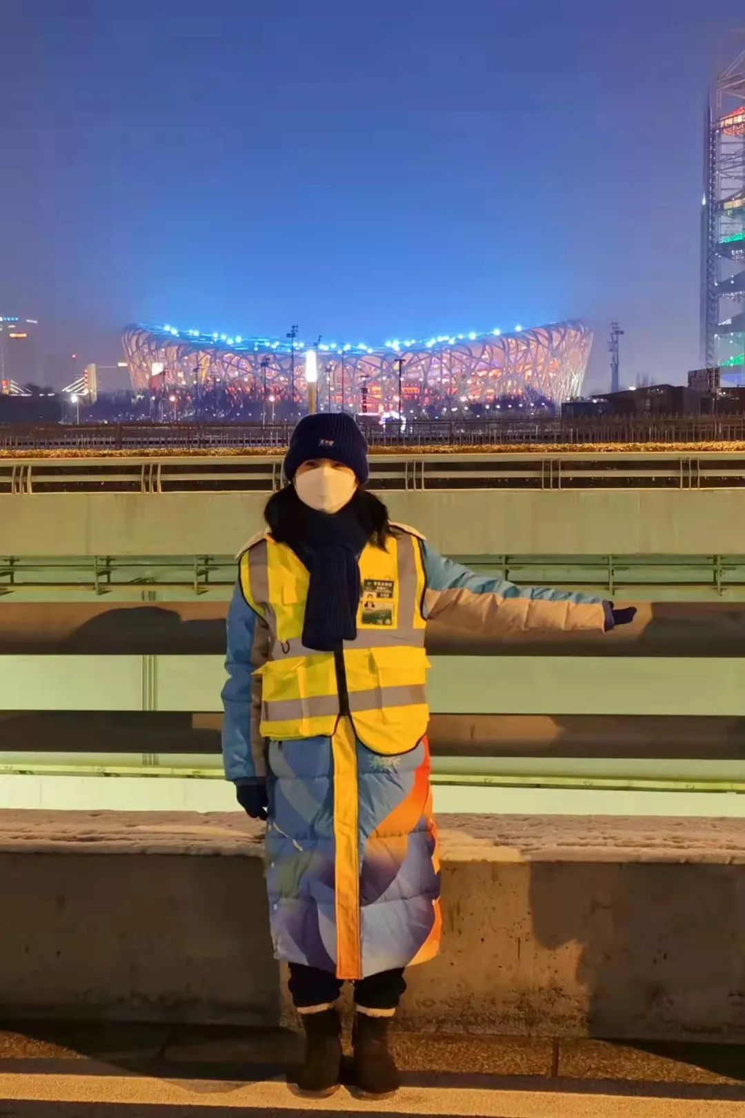 虽然是在马路边上的志愿服务岗位,但很幸运,刘娟也有机会在现场看到过开闭幕仪式上的烟花秀,也算是见证了盛大的表演。在看到烟花绽放的那一刻,在场的志愿者们都立马拿出手机录下这精彩的一幕!内心无比激动、欣喜、自豪和骄傲!“烟花一结束,大家都连连发出欢呼声,真的是太壮观!太美好了!当然,除了美丽的烟花,观众们在前往观演和观演完毕返回停车场时脸上洋溢的笑容也令我印象极深。”刘娟说道。