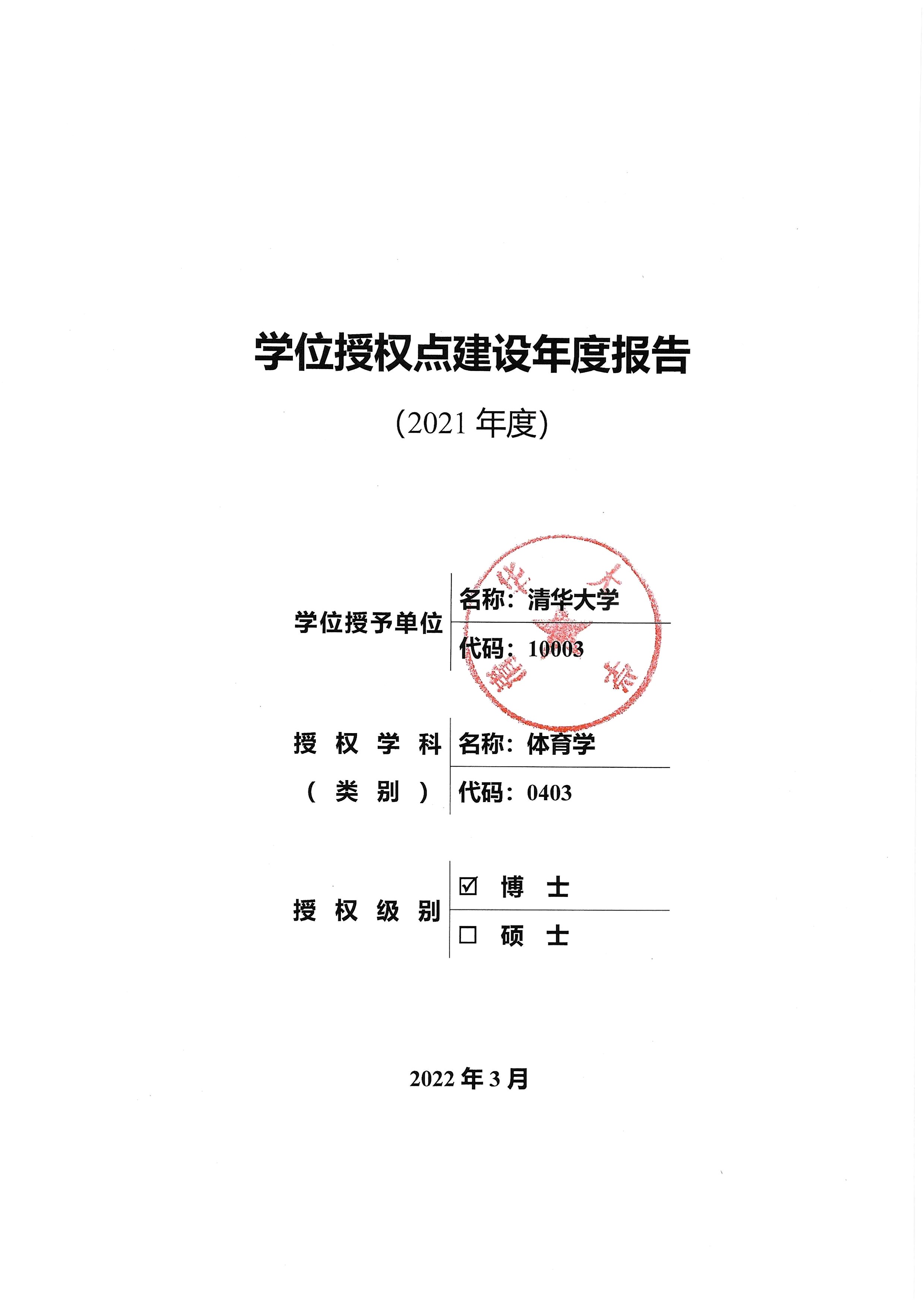 2022年1月6日,清华体育学学位点在接到学位授权点周期性合格评估工作通知后,第一时间成立学位点评估工作小组,对2020、2021年学位点工作进行了全面梳理,对相关资料文件进行了收集整理,于2022年2月底基本完成了《学位授权点建设年度报告》的撰写,以及《学位授权点基本状态信息表》的填写工作,进展基本顺利。