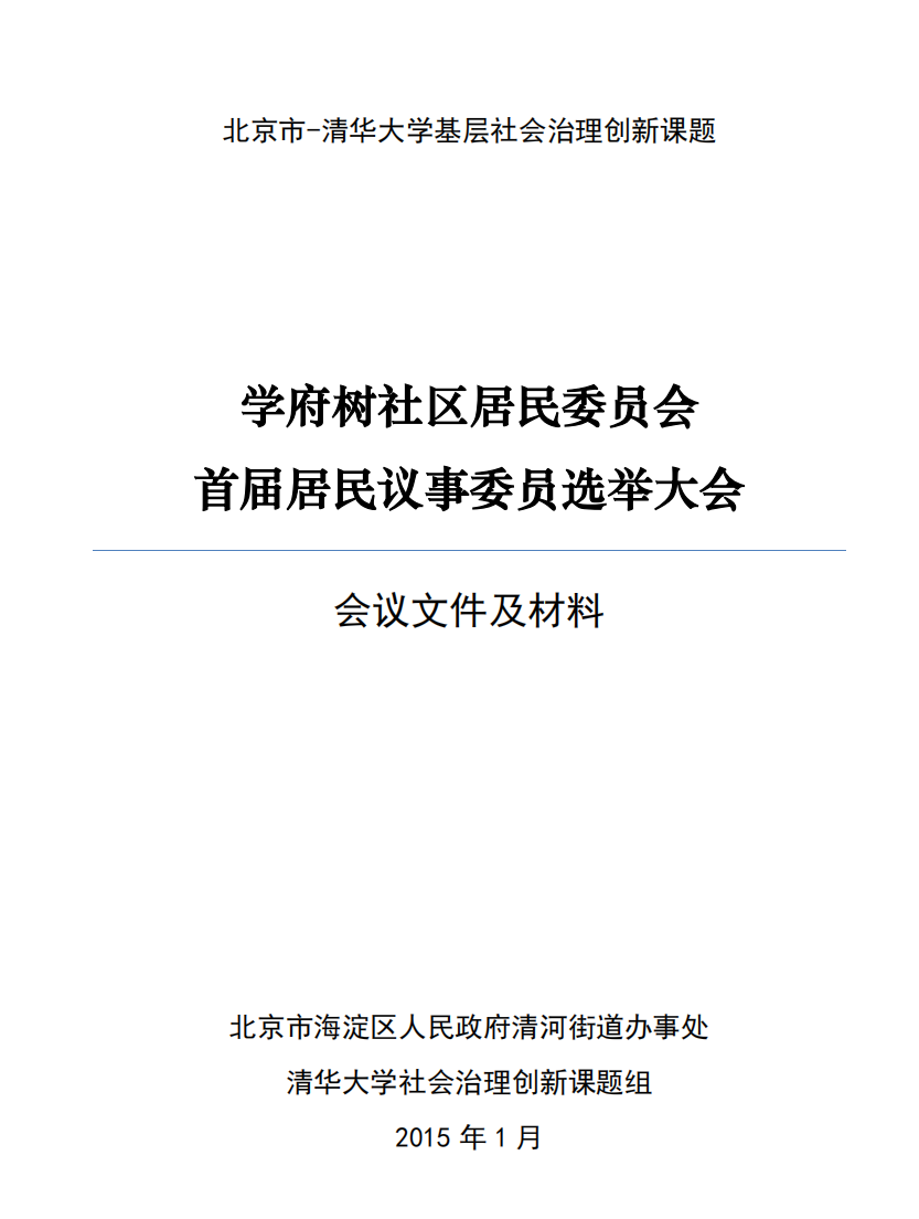 2014-2015年深入清河社区调查,开展议事委员选举,负责起草所有选举相关材料